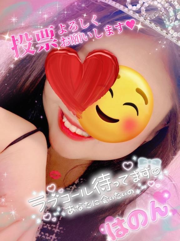 お兄様こんにちはミスヘブン投票時間も残りわずかとなりました今日で投票も終わりますですが時間がある限りの投票お願いいたします沢山投票したよとか見たよとかありがとうございますはのんがここまで頑張れたのもお兄様のおかげだよあとは結果次第ですねドキドキの瞬間をお兄様と過ごしたいな今日まで投票出来ますので押していただけたら嬉しいですお兄様大好きです本日ネット予約して頂けたら50枚獲得できるので是非ヘブンネット予約もよろしくお願いしますでは出勤向かいますモザイクはのん
